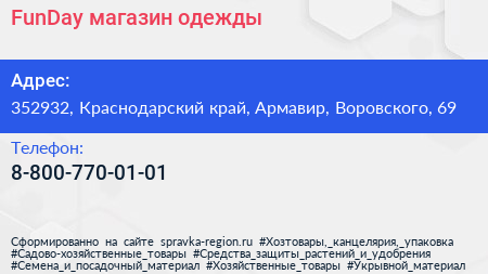 FunDay, магазин одежды по адресу 352932, Краснодарский край, Армавир, Воровского, 69 в дальнейшем Организация, размещена в следующих категориях: