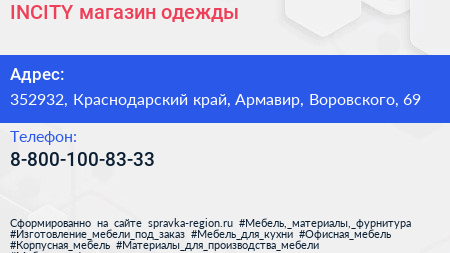 INCITY, магазин одежды по адресу 352932, Краснодарский край, Армавир, Воровского, 69 в дальнейшем Организация, размещена в следующих категориях:
