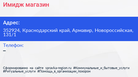 Имидж, магазин по адресу 352924, Краснодарский край, Армавир, Новороссийская, 131/1 в дальнейшем Организация, размещена в следующих категориях: