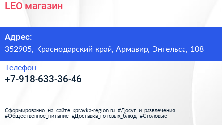 LEO, магазин по адресу 352905, Краснодарский край, Армавир, Энгельса, 108 в дальнейшем Организация, размещена в следующих категориях: