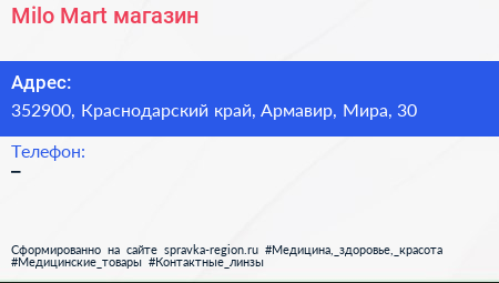 Milo Mart, магазин по адресу 352900, Краснодарский край, Армавир, Мира, 30 в дальнейшем Организация, размещена в следующих категориях: