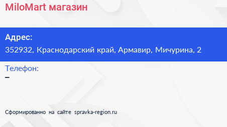 MiloMart, магазин по адресу 352932, Краснодарский край, Армавир, Мичурина, 2 в дальнейшем Организация, размещена в следующих категориях:
