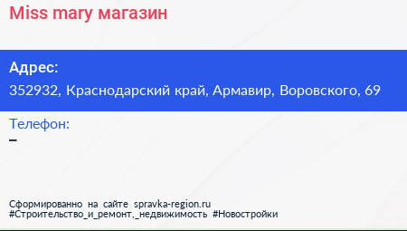 Miss mary, магазин по адресу 352932, Краснодарский край, Армавир, Воровского, 69 в дальнейшем Организация, размещена в следующих категориях: