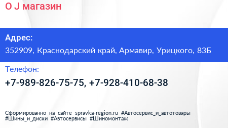 O & J, магазин по адресу 352909, Краснодарский край, Армавир, Урицкого, 83Б в дальнейшем Организация, размещена в следующих категориях: