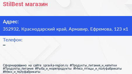 StilBest, магазин по адресу 352932, Краснодарский край, Армавир, Ефремова, 123 к1 в дальнейшем Организация, размещена в следующих категориях: