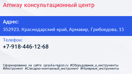 Amway, консультационный центр по адресу 352923, Краснодарский край, Армавир, Грибоедова, 15 в дальнейшем Организация, размещена в следующих категориях: