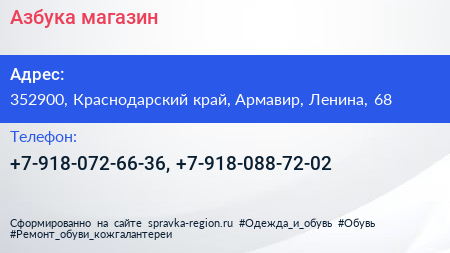 Азбука, магазин по адресу 352900, Краснодарский край, Армавир, Ленина, 68 в дальнейшем Организация, размещена в следующих категориях: