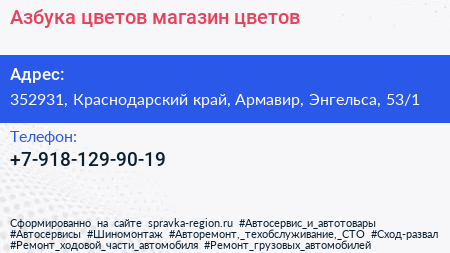 Азбука цветов, магазин цветов по адресу 352931, Краснодарский край, Армавир, Энгельса, 53/1 в дальнейшем Организация, размещена в следующих категориях: