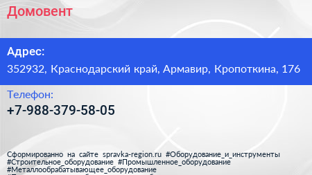 Домовент по адресу 352932, Краснодарский край, Армавир, Кропоткина, 176 в дальнейшем Организация, размещена в следующих категориях: