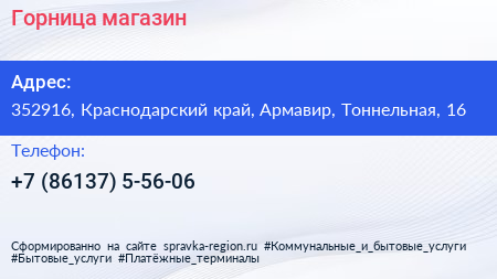 Горница, магазин по адресу 352916, Краснодарский край, Армавир, Тоннельная, 16 в дальнейшем Организация, размещена в следующих категориях: