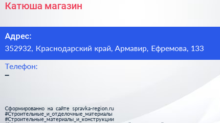 Катюша, магазин по адресу 352932, Краснодарский край, Армавир, Ефремова, 133 в дальнейшем Организация, размещена в следующих категориях: