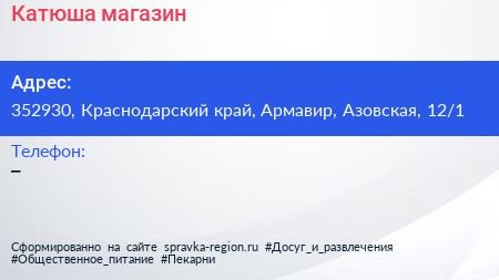 Катюша, магазин по адресу 352930, Краснодарский край, Армавир, Азовская, 12/1 в дальнейшем Организация, размещена в следующих категориях: