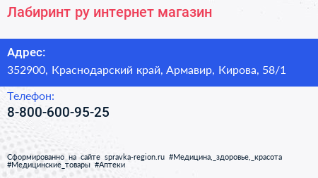 Лабиринт.ру, интернет-магазин по адресу 352900, Краснодарский край, Армавир, Кирова, 58/1 в дальнейшем Организация, размещена в следующих категориях: