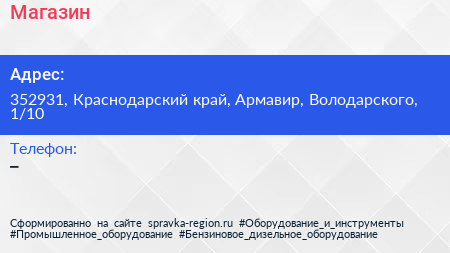 Магазин по адресу 352931, Краснодарский край, Армавир, Володарского, 1/10 в дальнейшем Организация, размещена в следующих категориях: