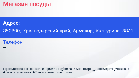 Магазин посуды по адресу 352900, Краснодарский край, Армавир, Халтурина, 88/4 в дальнейшем Организация, размещена в следующих категориях: