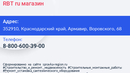 RBT.ru, магазин по адресу 352910, Краснодарский край, Армавир, Воровского, 68 в дальнейшем Организация, размещена в следующих категориях: