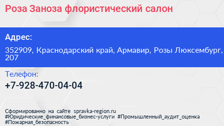 Роза Заноза, флористический салон по адресу 352909, Краснодарский край, Армавир, Розы Люксембург, 207 в дальнейшем Организация, размещена в следующих категориях: