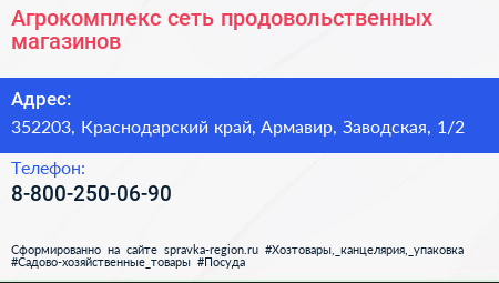 Агрокомплекс, сеть продовольственных магазинов по адресу 352203, Краснодарский край, Армавир, Заводская, 1/2 в дальнейшем Организация, размещена в следующих категориях: