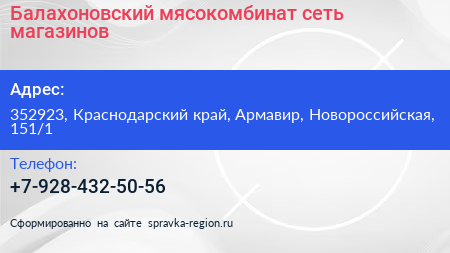 Балахоновский мясокомбинат, сеть магазинов по адресу 352923, Краснодарский край, Армавир, Новороссийская, 151/1 в дальнейшем Организация, размещена в следующих категориях: