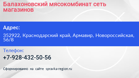 Балахоновский мясокомбинат, сеть магазинов по адресу 352922, Краснодарский край, Армавир, Новороссийская, 56/8 в дальнейшем Организация, размещена в следующих категориях: