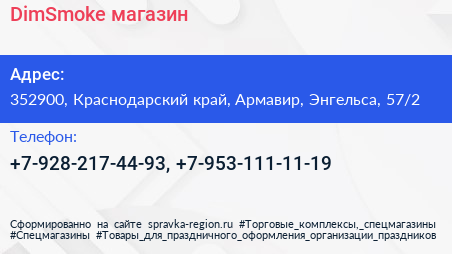 DimSmoke, магазин по адресу 352900, Краснодарский край, Армавир, Энгельса, 57/2 в дальнейшем Организация, размещена в следующих категориях: