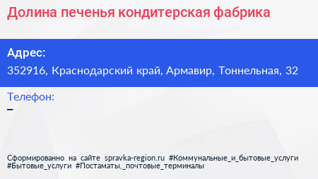 Долина печенья, кондитерская фабрика по адресу 352916, Краснодарский край, Армавир, Тоннельная, 32 в дальнейшем Организация, размещена в следующих категориях: