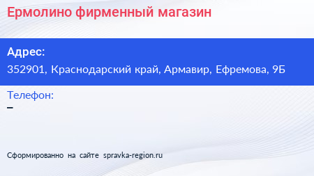 Ермолино, фирменный магазин по адресу 352901, Краснодарский край, Армавир, Ефремова, 9Б в дальнейшем Организация, размещена в следующих категориях: