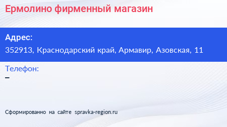 Ермолино, фирменный магазин по адресу 352913, Краснодарский край, Армавир, Азовская, 11 в дальнейшем Организация, размещена в следующих категориях:
