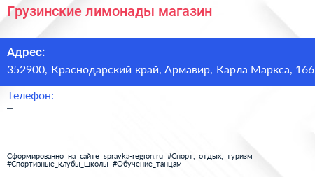 Грузинские лимонады, магазин по адресу 352900, Краснодарский край, Армавир, Карла Маркса, 166 в дальнейшем Организация, размещена в следующих категориях: