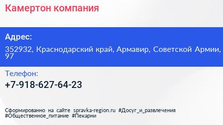 Камертон, компания по адресу 352932, Краснодарский край, Армавир, Советской Армии, 97 в дальнейшем Организация, размещена в следующих категориях: