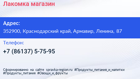 Лакомка, магазин по адресу 352900, Краснодарский край, Армавир, Ленина, 87 в дальнейшем Организация, размещена в следующих категориях: