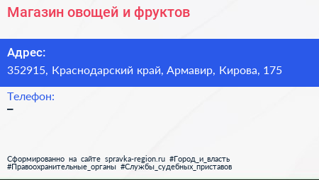 Магазин овощей и фруктов по адресу 352915, Краснодарский край, Армавир, Кирова, 175 в дальнейшем Организация, размещена в следующих категориях: