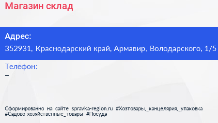 Магазин-склад по адресу 352931, Краснодарский край, Армавир, Володарского, 1/5 в дальнейшем Организация, размещена в следующих категориях: