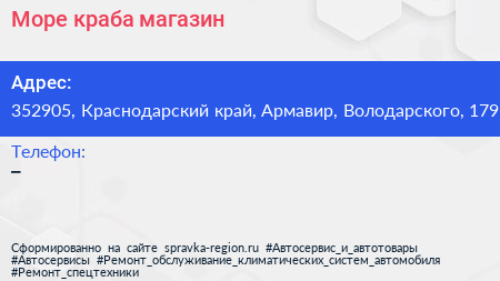 Море краба, магазин по адресу 352905, Краснодарский край, Армавир, Володарского, 179 в дальнейшем Организация, размещена в следующих категориях: