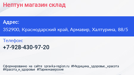 Нептун, магазин-склад по адресу 352900, Краснодарский край, Армавир, Халтурина, 88/5 в дальнейшем Организация, размещена в следующих категориях: