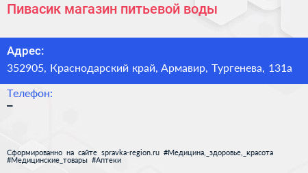 Пивасик, магазин питьевой воды по адресу 352905, Краснодарский край, Армавир, Тургенева, 131а в дальнейшем Организация, размещена в следующих категориях: