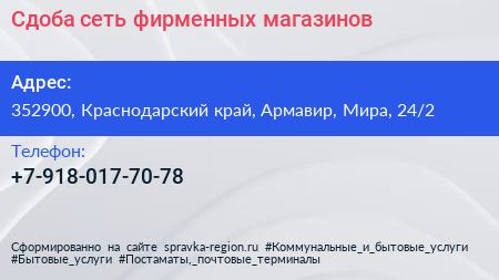 Сдоба, сеть фирменных магазинов по адресу 352900, Краснодарский край, Армавир, Мира, 24/2 в дальнейшем Организация, размещена в следующих категориях: