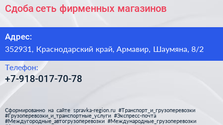 Сдоба, сеть фирменных магазинов по адресу 352931, Краснодарский край, Армавир, Шаумяна, 8/2 в дальнейшем Организация, размещена в следующих категориях: