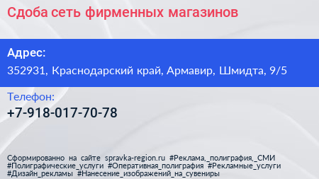 Сдоба, сеть фирменных магазинов по адресу 352931, Краснодарский край, Армавир, Шмидта, 9/5 в дальнейшем Организация, размещена в следующих категориях: