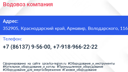 Водовоз, компания по адресу 352905, Краснодарский край, Армавир, Володарского, 116 в дальнейшем Организация, размещена в следующих категориях: