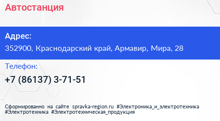 Автостанция по адресу 352900, Краснодарский край, Армавир, Мира, 28 в дальнейшем Организация, размещена в следующих категориях: