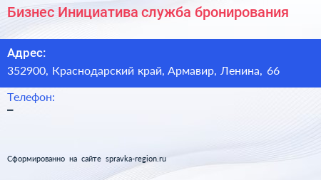 Бизнес Инициатива, служба бронирования по адресу 352900, Краснодарский край, Армавир, Ленина, 66 в дальнейшем Организация, размещена в следующих категориях: