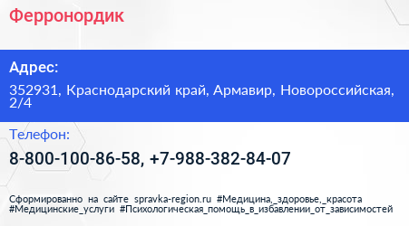 Ферронордик по адресу 352931, Краснодарский край, Армавир, Новороссийская, 2/4 в дальнейшем Организация, размещена в следующих категориях: