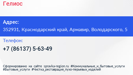 Гелиос по адресу 352931, Краснодарский край, Армавир, Володарского, 5 в дальнейшем Организация, размещена в следующих категориях: