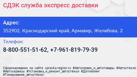 СДЭК, служба экспресс-доставки по адресу 352902, Краснодарский край, Армавир, Желябова, 2 в дальнейшем Организация, размещена в следующих категориях: