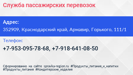Служба пассажирских перевозок по адресу 352909, Краснодарский край, Армавир, Горького, 111/1 в дальнейшем Организация, размещена в следующих категориях: