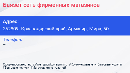 Баязет, сеть фирменных магазинов по адресу 352909, Краснодарский край, Армавир, Мира, 50 в дальнейшем Организация, размещена в следующих категориях: