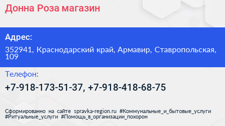 Донна Роза, магазин по адресу 352941, Краснодарский край, Армавир, Ставропольская, 109 в дальнейшем Организация, размещена в следующих категориях: