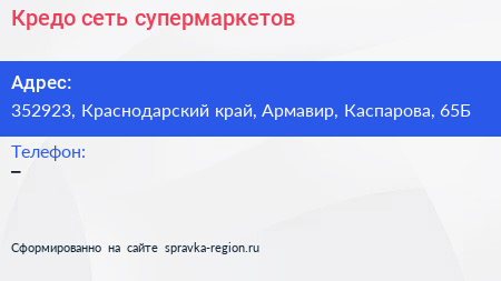 Кредо, сеть супермаркетов по адресу 352923, Краснодарский край, Армавир, Каспарова, 65Б в дальнейшем Организация, размещена в следующих категориях: