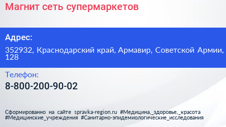 Магнит, сеть супермаркетов по адресу 352932, Краснодарский край, Армавир, Советской Армии, 128 в дальнейшем Организация, размещена в следующих категориях: